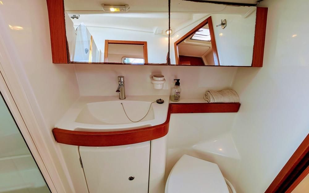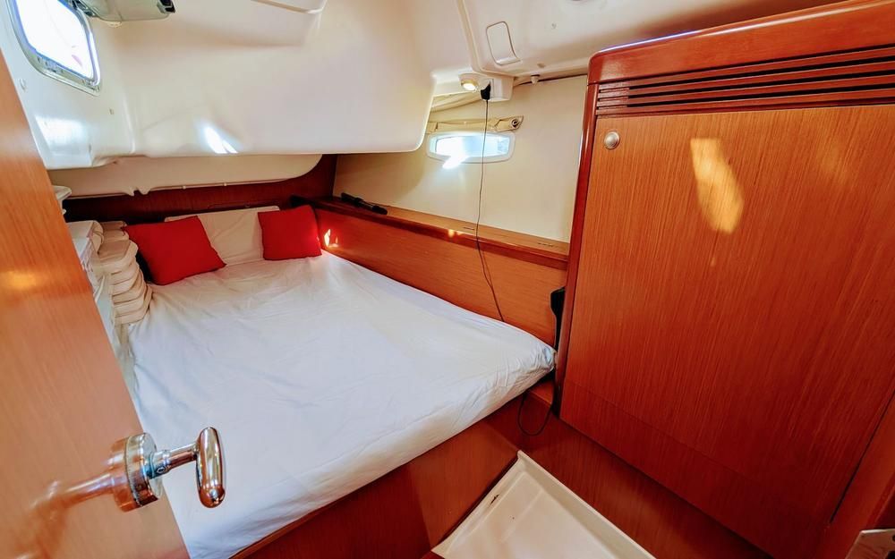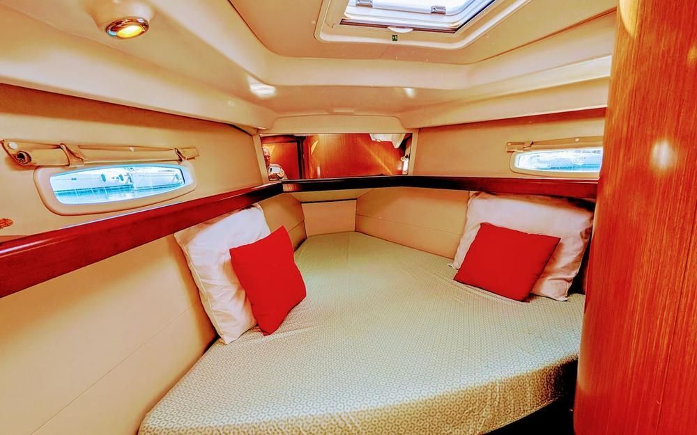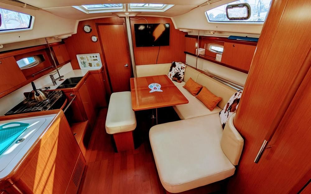 The Oceanis 40 comfortably accommodates up to 10 guests, featuring three cabins and a bright, welcoming saloon that provides plenty of space to relax on board. The interior is designed with clean lines and practical living areas, offering a comfortable environment for both day trips and longer stays.