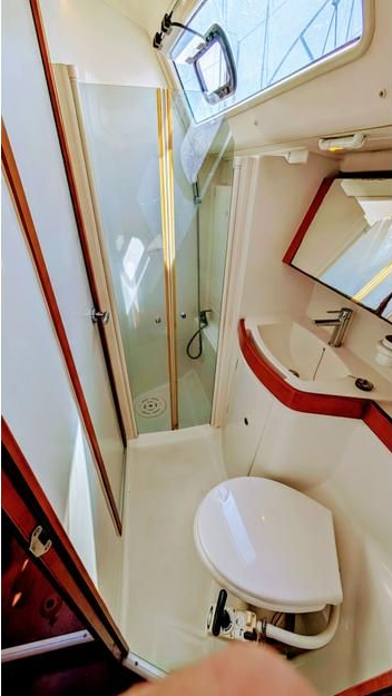 On deck, the yacht offers a spacious cockpit with seating and a central table, perfect for socialising while enjoying the sea breeze. The layout is designed for both comfort and functionality, with sailing controls positioned for easy handling, making it suitable for experienced sailors or those opting for a skippered experience.