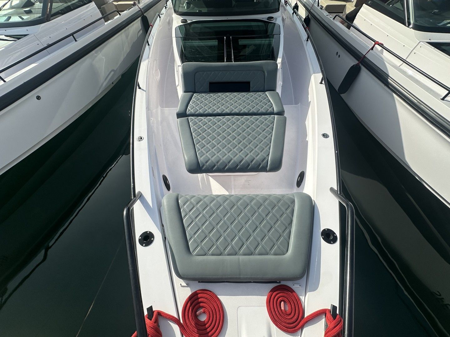 The Axopar 37 XC blends the practicality of a walkaround center console with the comfort of a fully enclosed, weather-protected cabin. It offers great performance, easy movement, versatile indoor and outdoor social spaces, and distinctive design — redefining what a cabin boat can be.