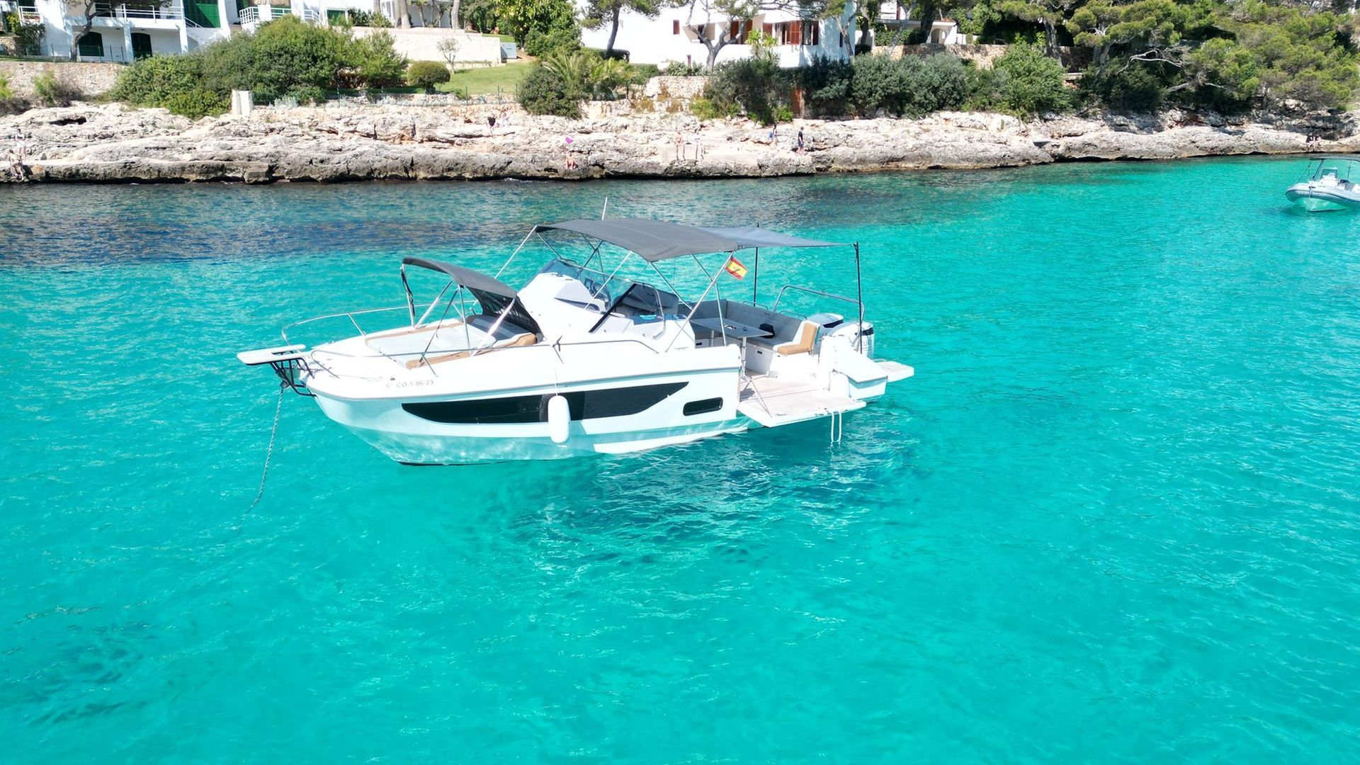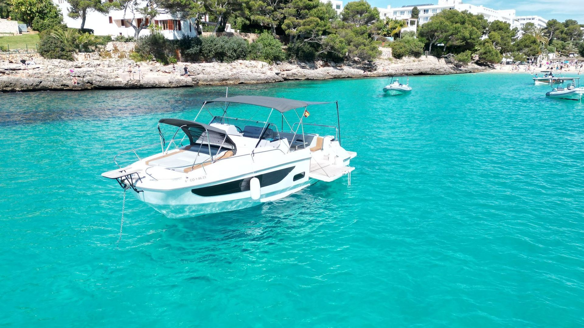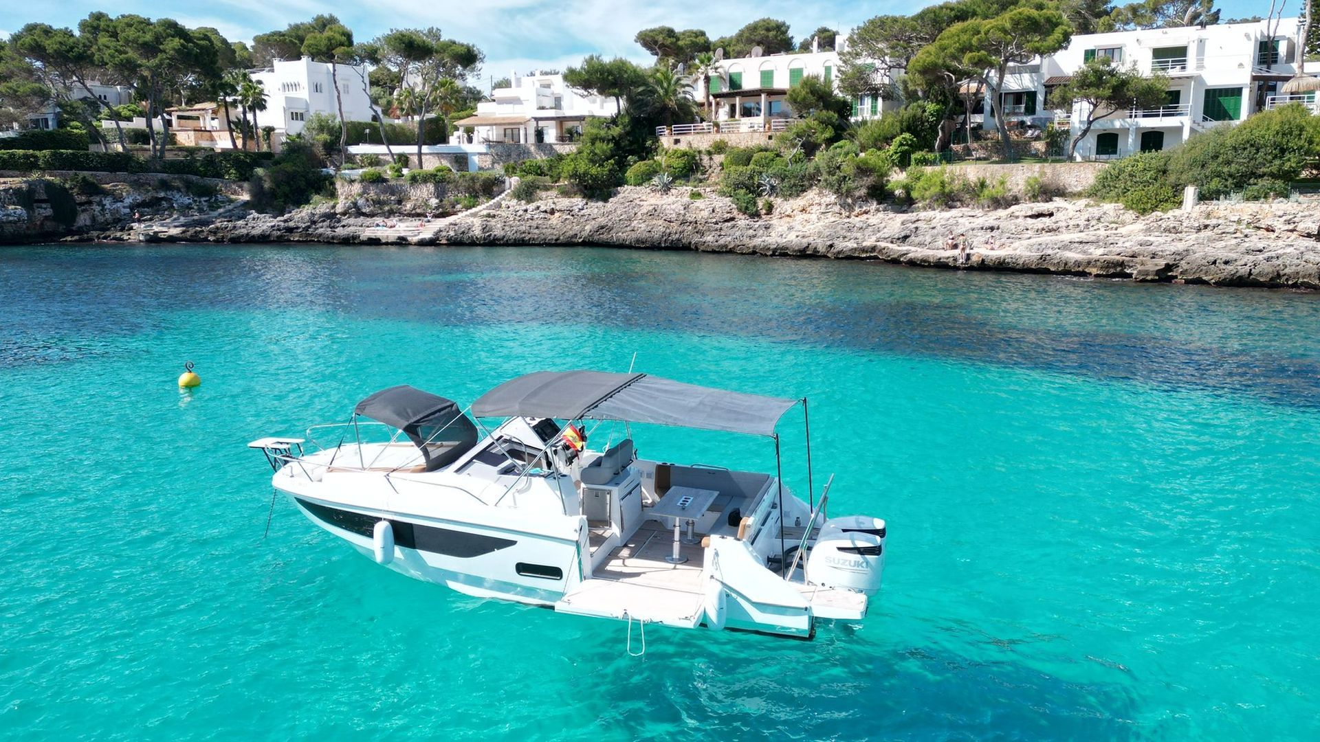 Elegant, spacious, and ready for adventure, Beneteau is a 9 meter boat blending comfort and performance. With a 250hp engine and an onboard bathroom, she’s ideal for exploring the coastline of Cala D’or in total relaxation.