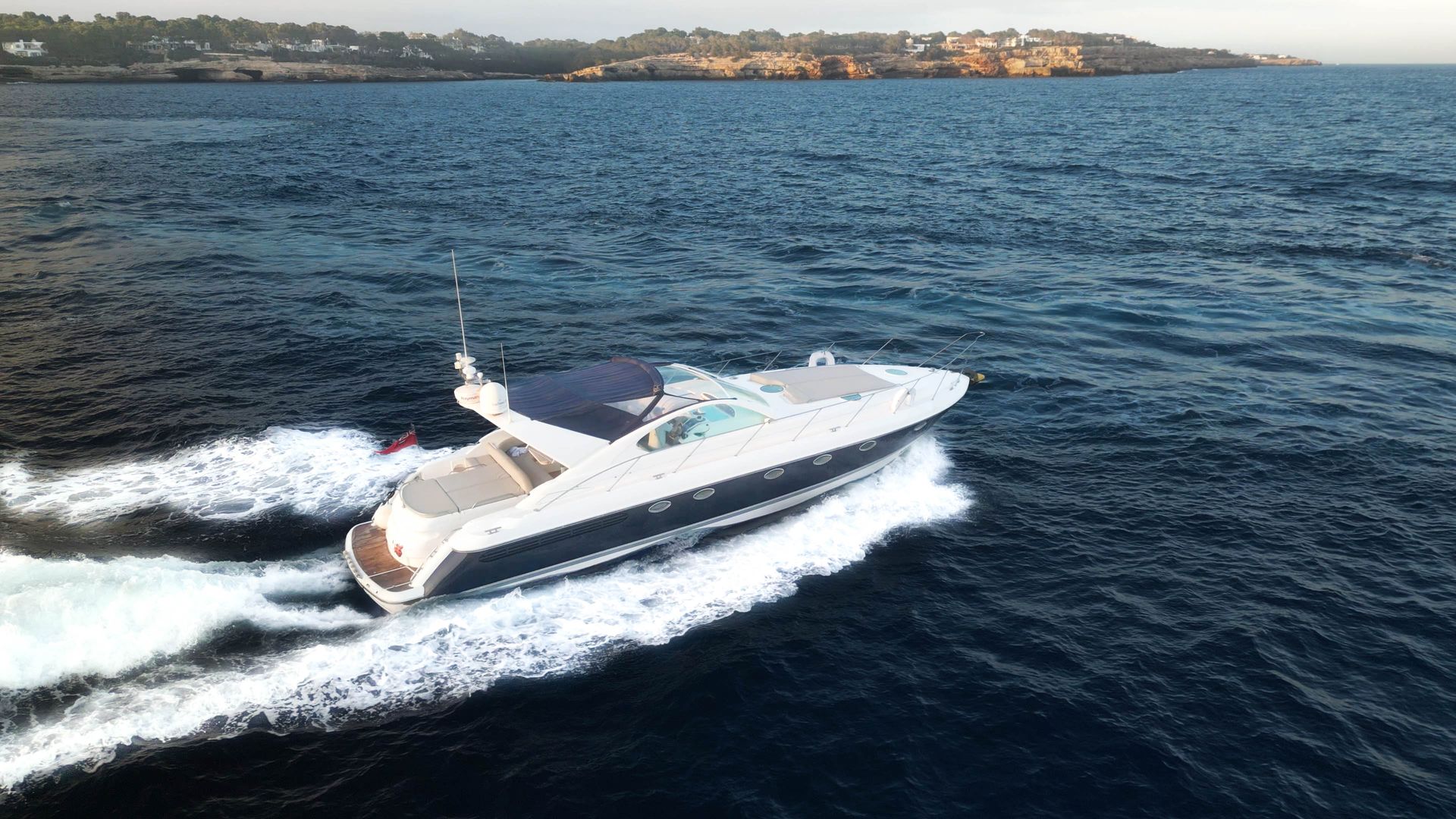 Whether you're gliding across calm seas or anchored in a quiet cala, the Targa 48 Open delivers a smooth, refined ride. Her spacious swim platform, sun-drenched deck, and open cockpit are perfect for lounging, dining, or diving into the turquoise waters of Cala d'Or and beyond.