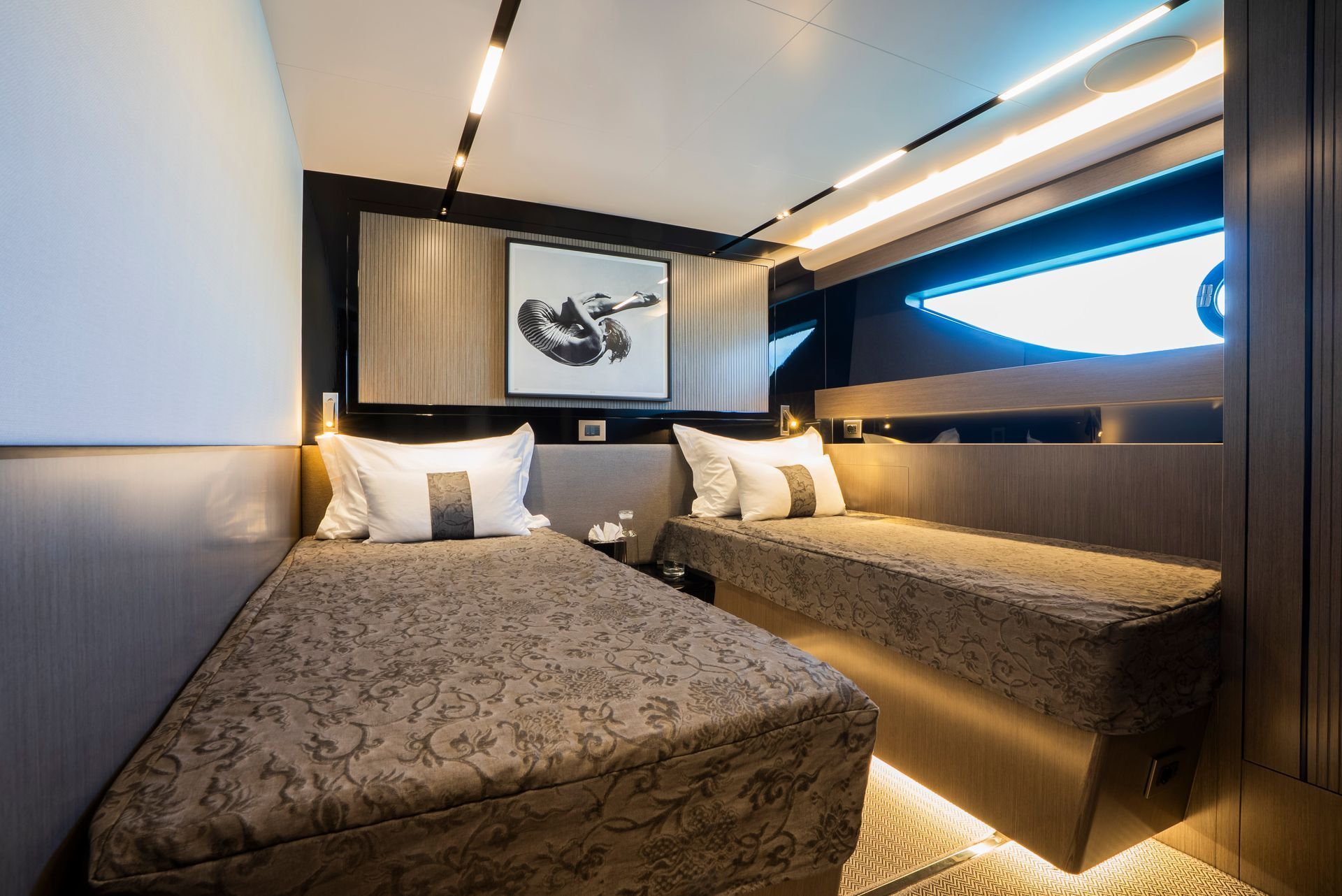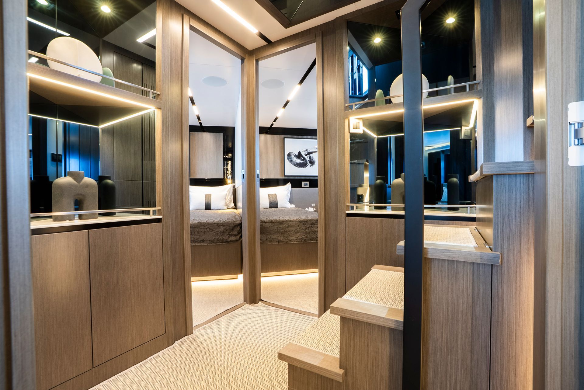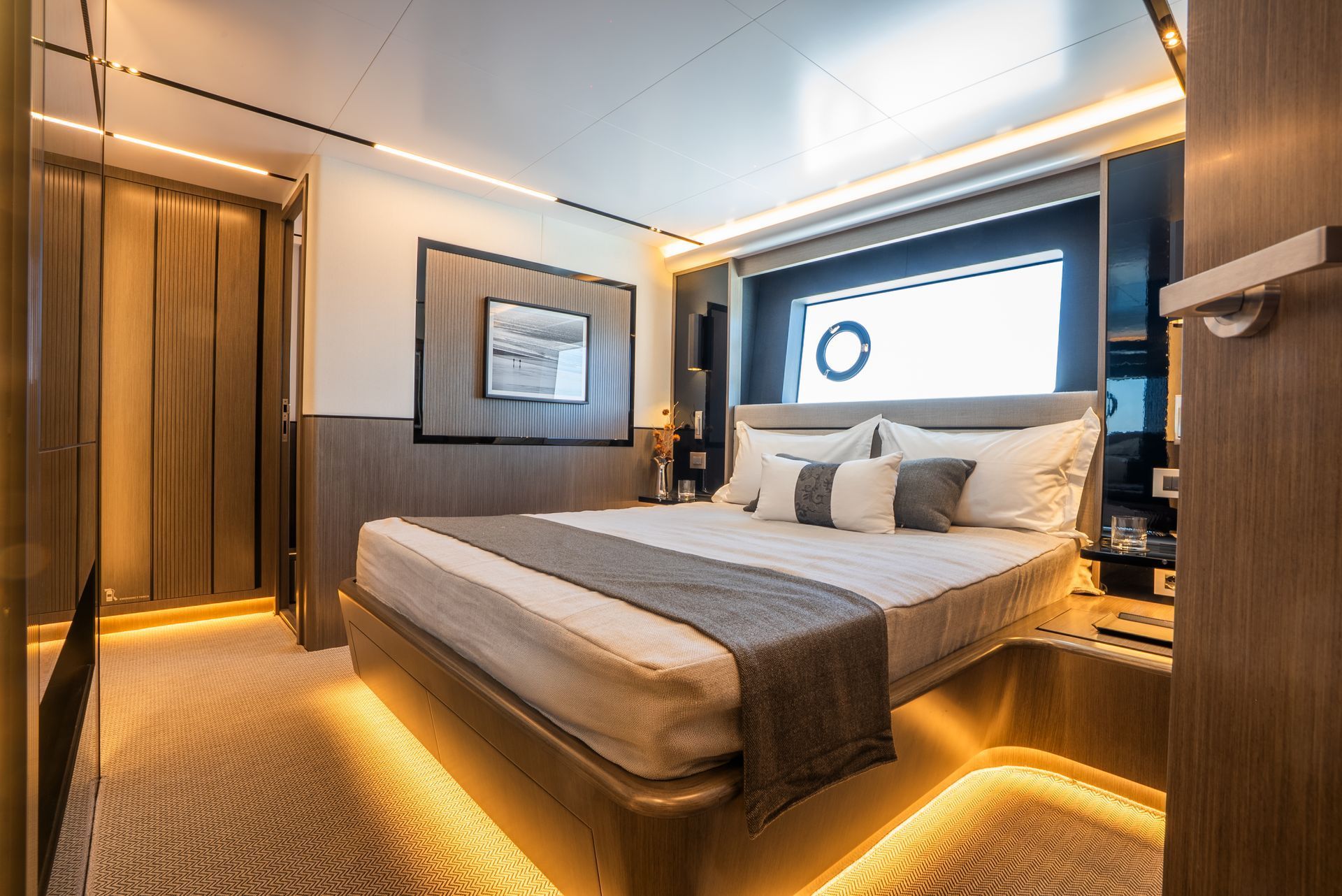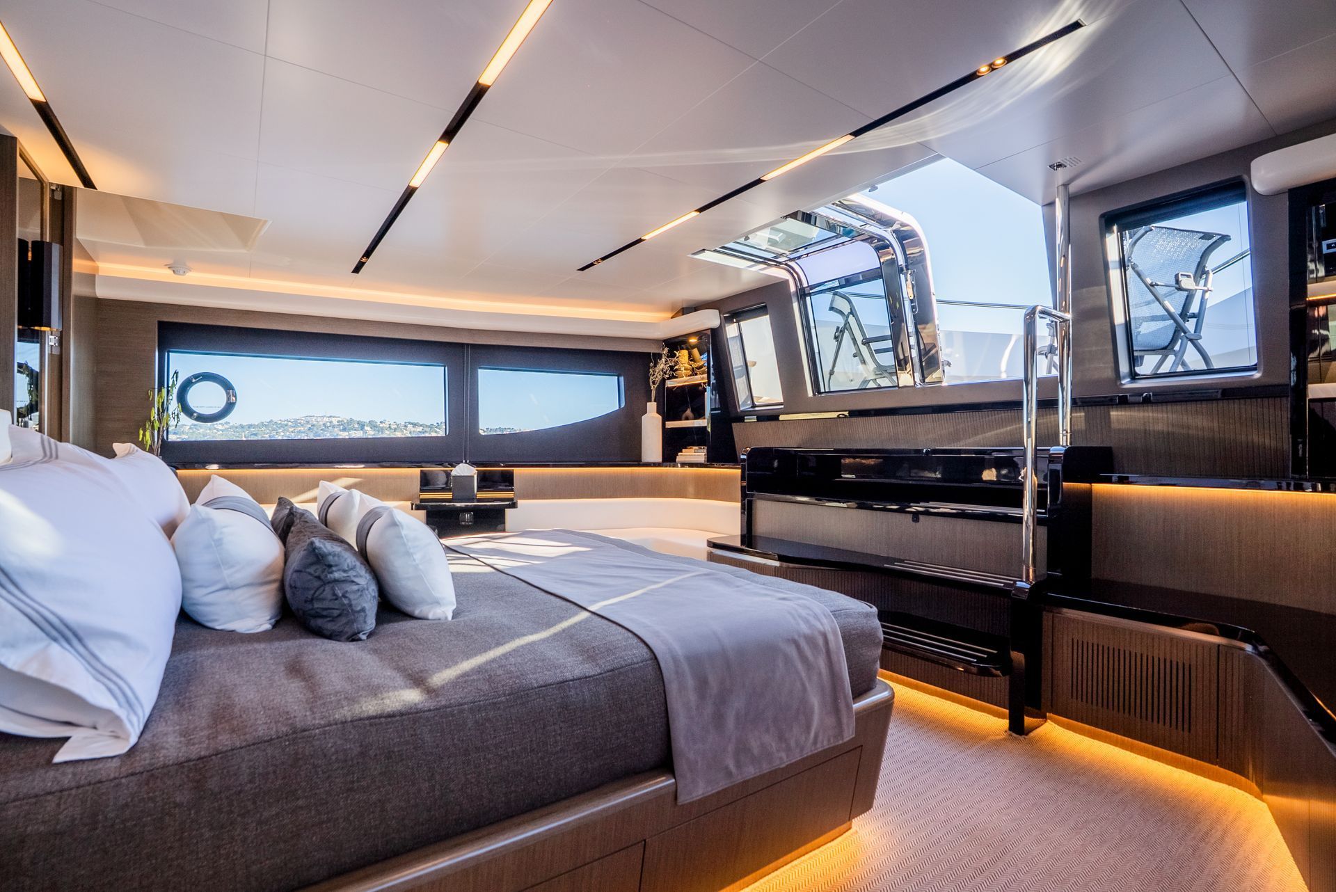 Onboard, you'll find beautifully appointed lounging areas, an open-plan saloon with floor-to-ceiling windows, and multiple sunbeds where you can stretch out and soak in the Mediterranean sun.