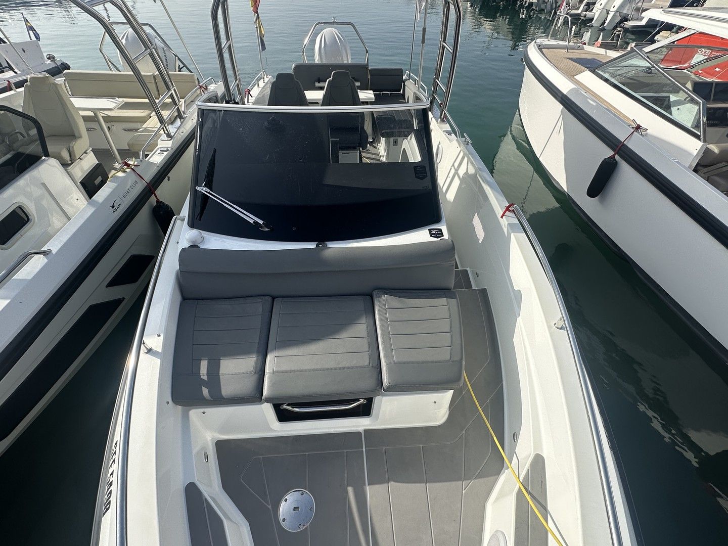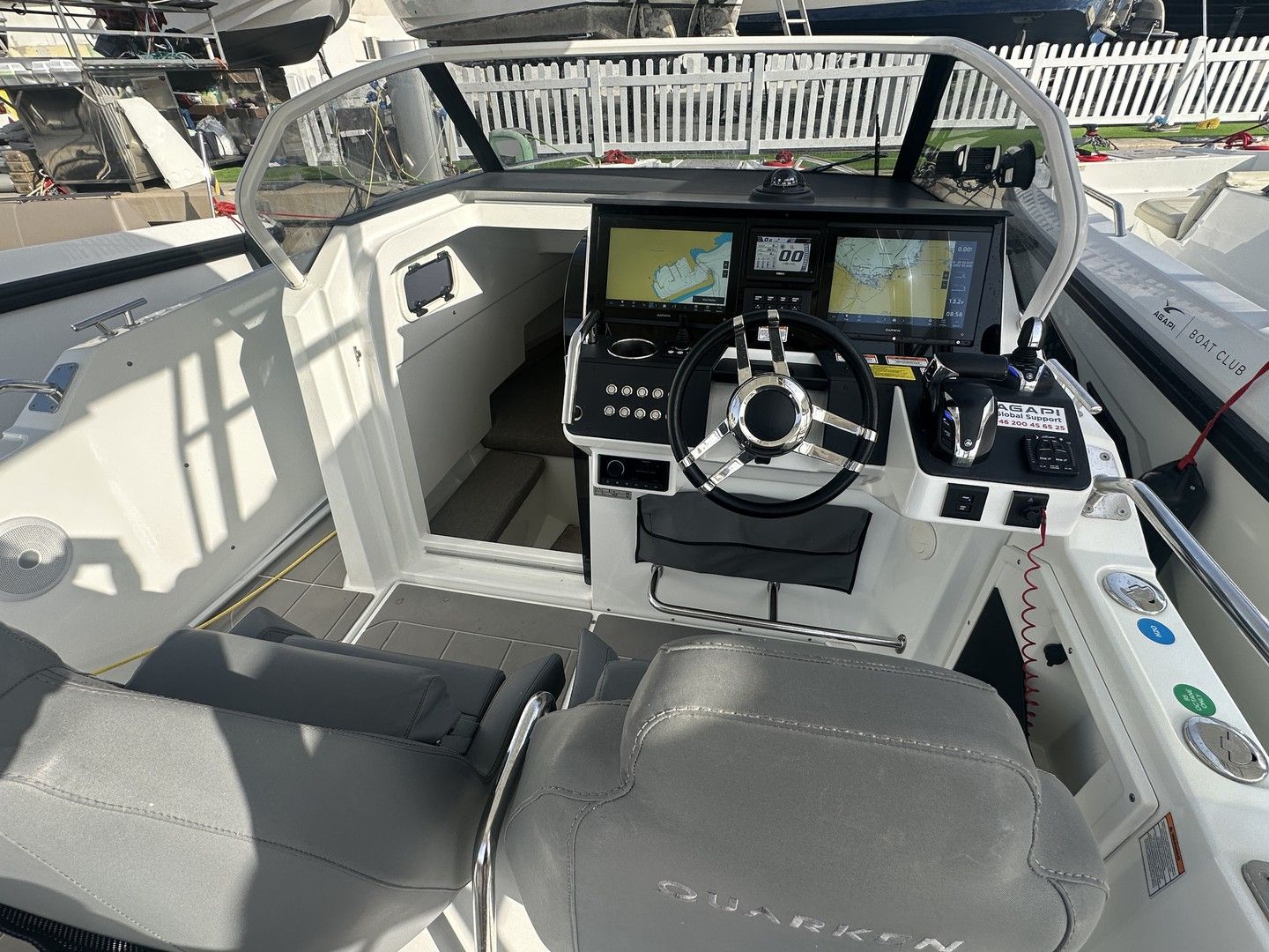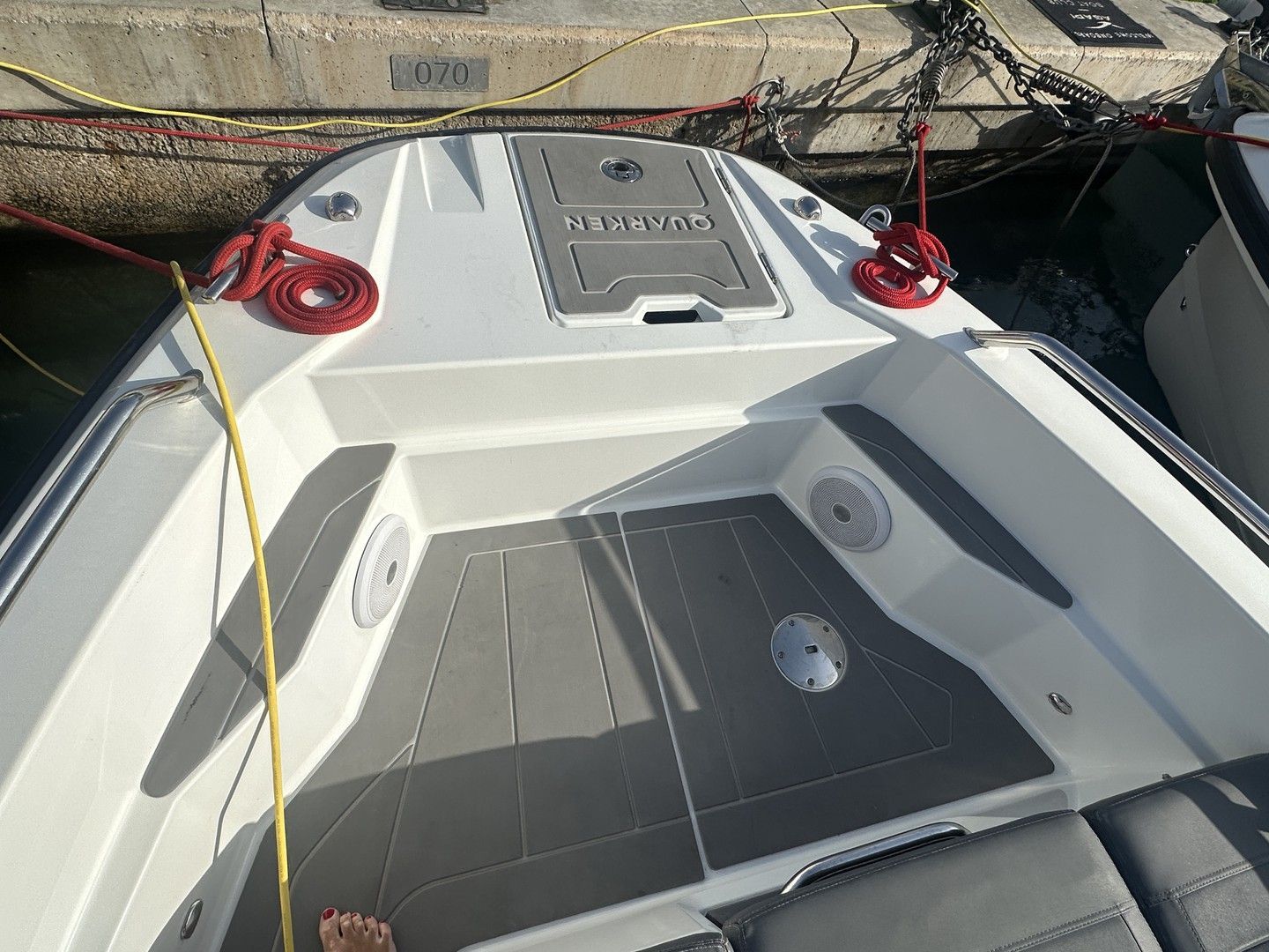 The Quarken 27 T-Top is a bold and contemporary day cruiser with Finnish roots. Its agile hull ensures confident handling, while the T-Top adds practical sun protection without compromising the open-air feel. With flexible seating, clever storage, and premium detailing, it’s built for active days at sea with style and ease.