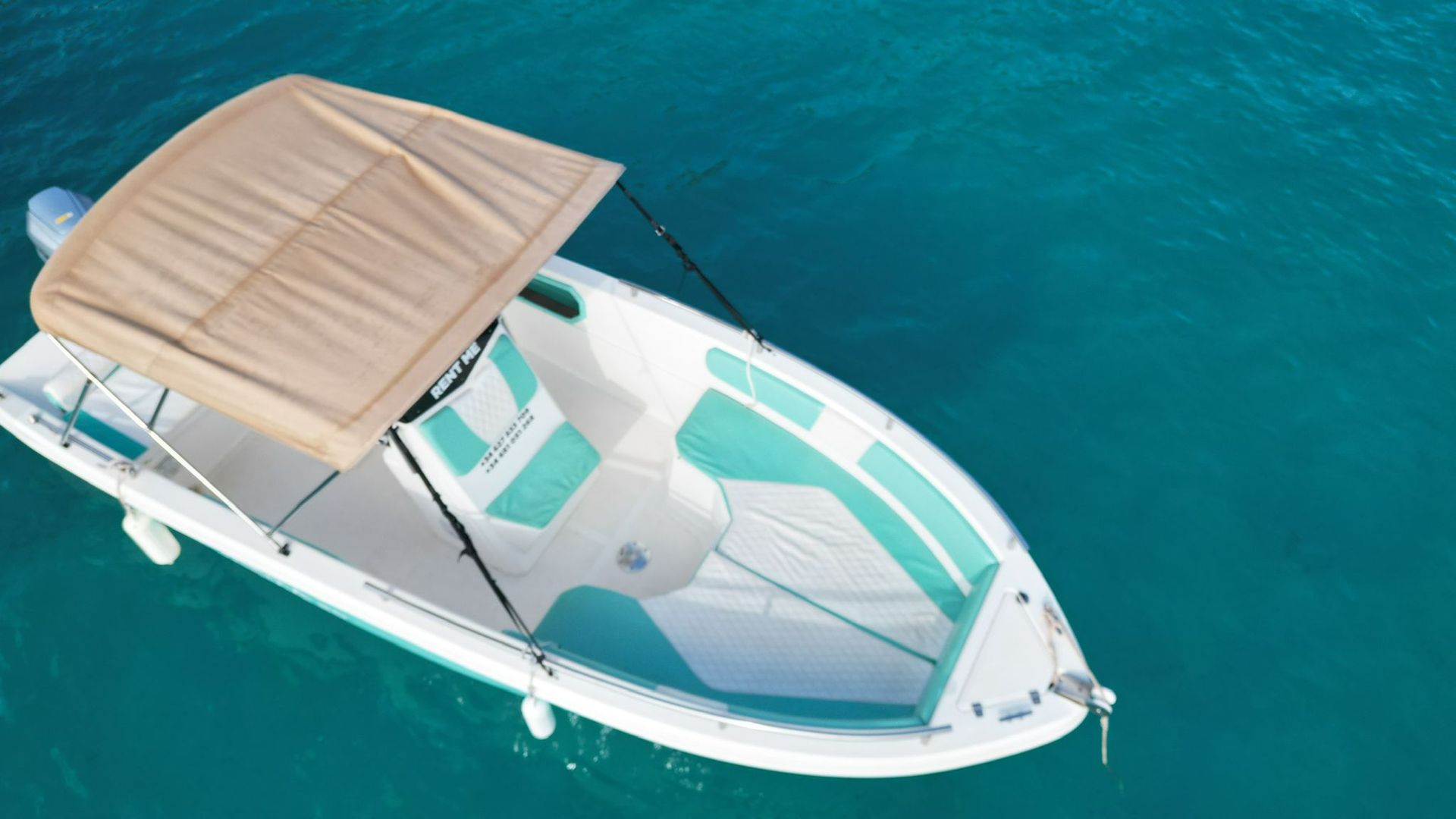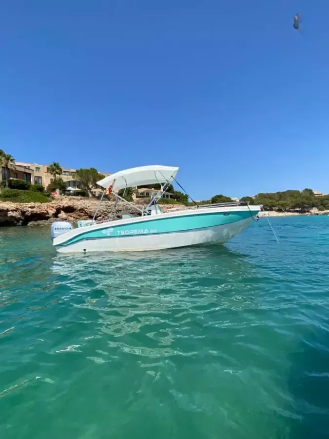 Sleek, stylish, and built for easy adventures, Teorima is a 6m boat with 100hp of smooth power — perfect for up to 7 guests to explore the stunning coast of Cala D’or. Cruise past rugged cliffs, drop anchor in crystal-clear bays, and swim or sunbathe to your heart’s content.