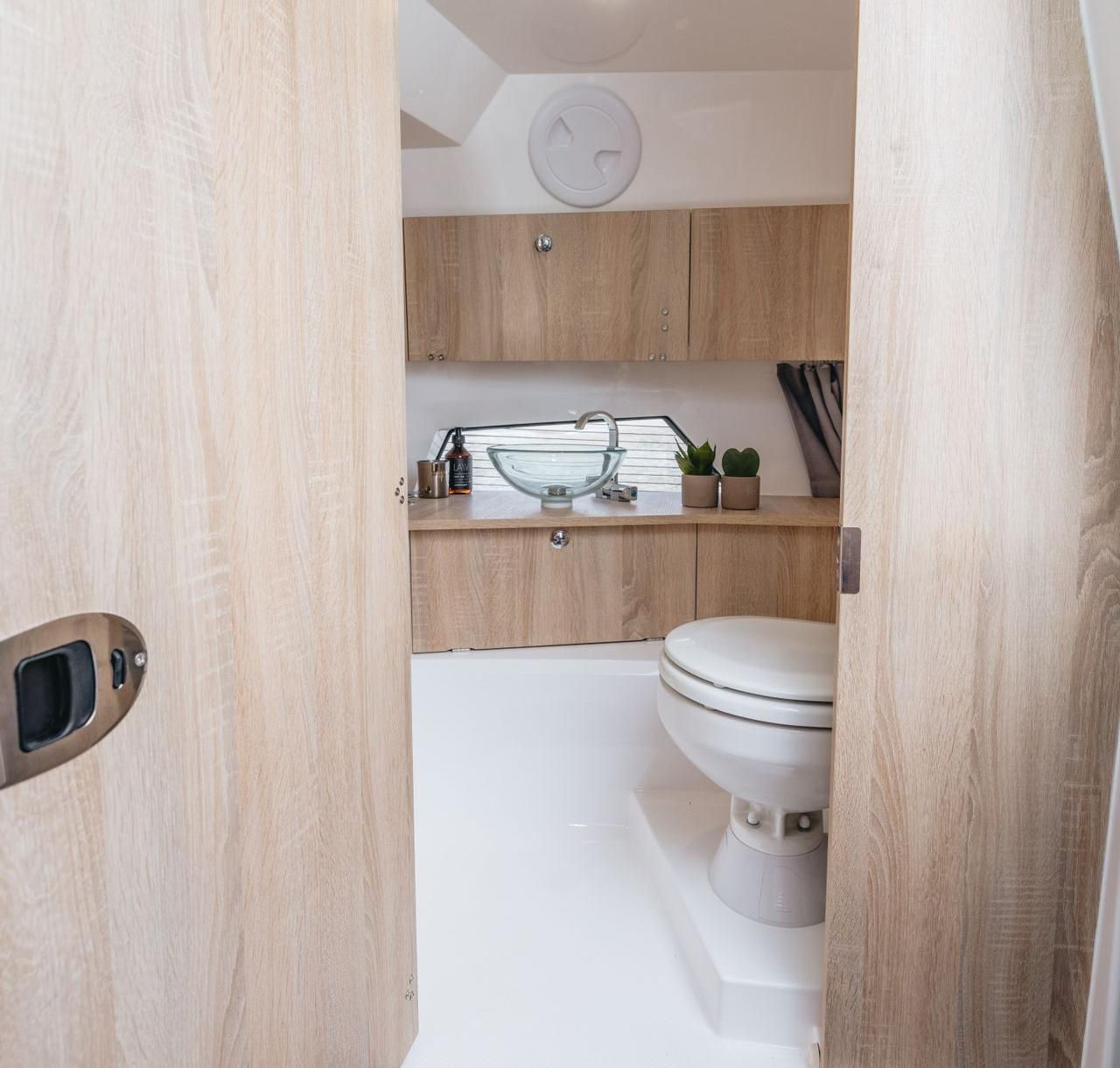 Designed for comfort and social cruising, iSea One welcomes up to 16 guests on board. The wide beam of the catamaran creates generous deck space, including a sun deck, swim platform, shaded seating under the Bimini, and comfortable deck furniture for enjoying the scenery. Guests can relax, swim, or simply take in the peaceful surroundings of this remarkable natural park.